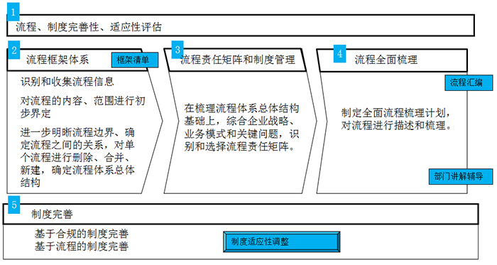建立流程制度的管理保障机制:建立流程制度的制订、审批、发布、变更的管理机制,实现对流程制度的管理,同时通过制度的信息化,保障制度的执行落地。